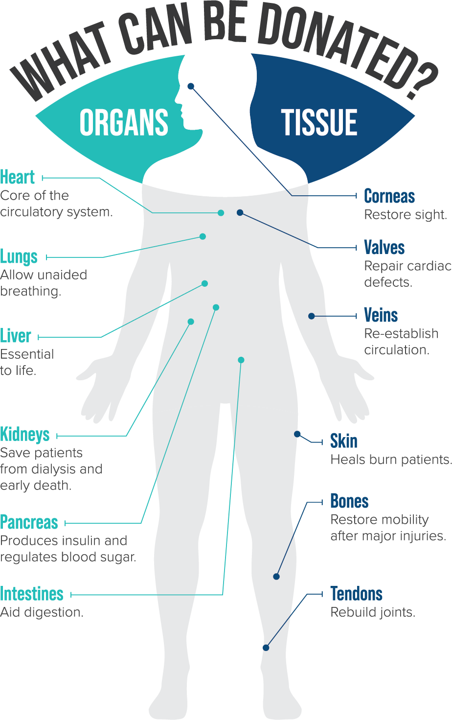 Organ and tissue transplants save and heal lives, allowing recipients more time with their loved ones and enjoyment of their lives.